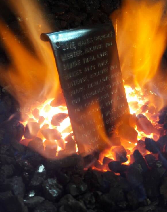 This Scroll is hand crafted over the anvil using age old blacksmithing techniques and made of nothing more than a fire, anvil and a hammer.