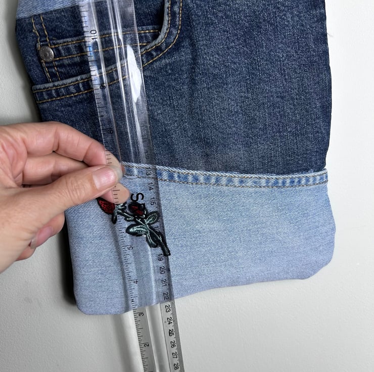 I wanted to mix light and dark denim together and make use of the jeans pocket and contrasting flower.