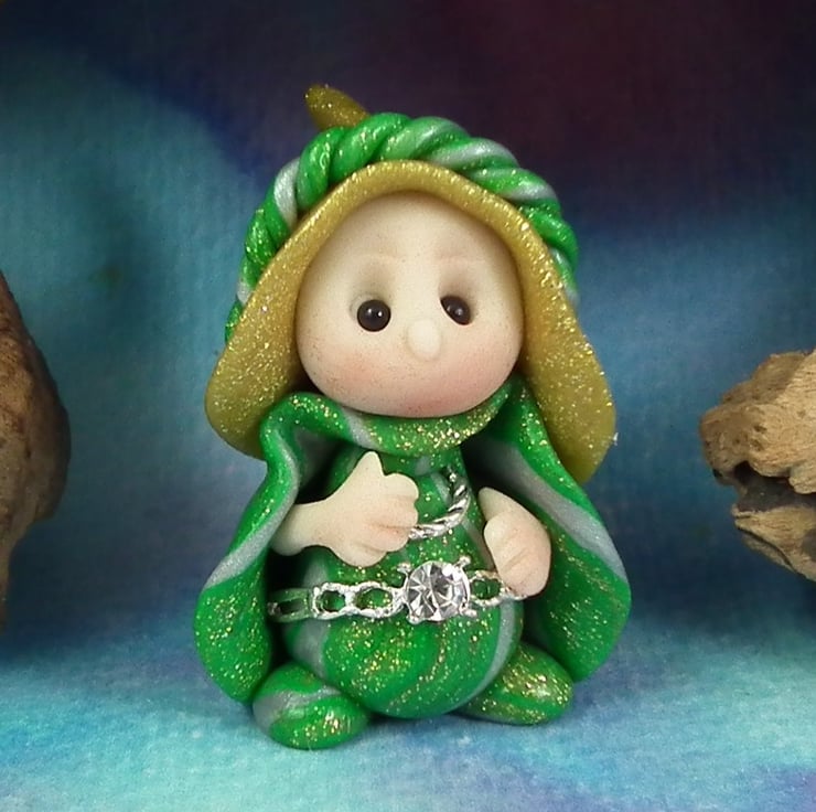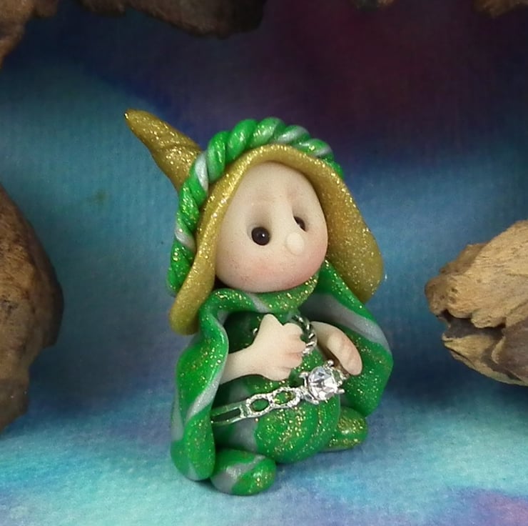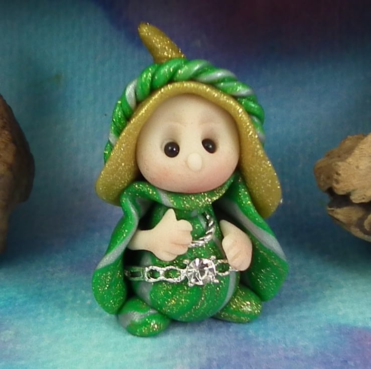 This is a 'one of a kind' creation having been entirely handmade without the use of moulds here at my studio on the Sussex Coast. Modelled with artist blend polymers, blushed before sealing with lacquer, Talitha has sparkling black onyx eyes and sparkling robes. Talitha the Garden Gnome is just one and a half inches tall.