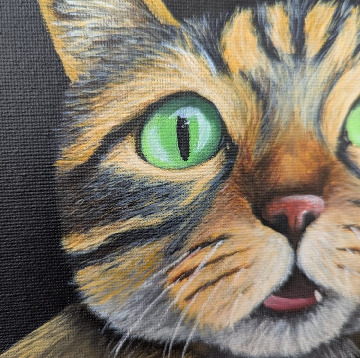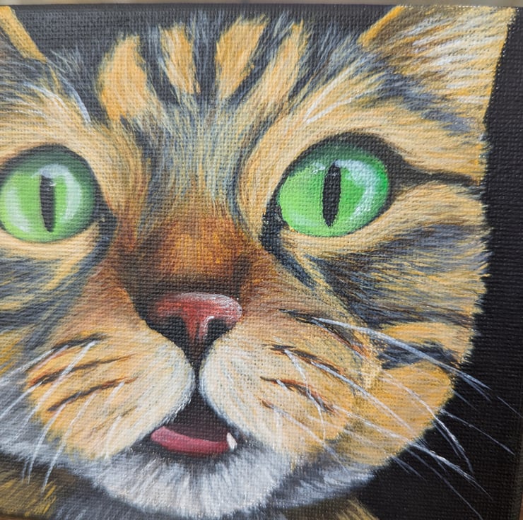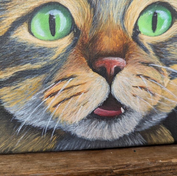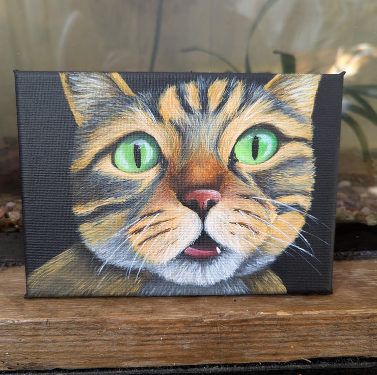 A 7" x 5" acrylic painting on a box canvas 1.5 cm in depth, so is easily hangable.
