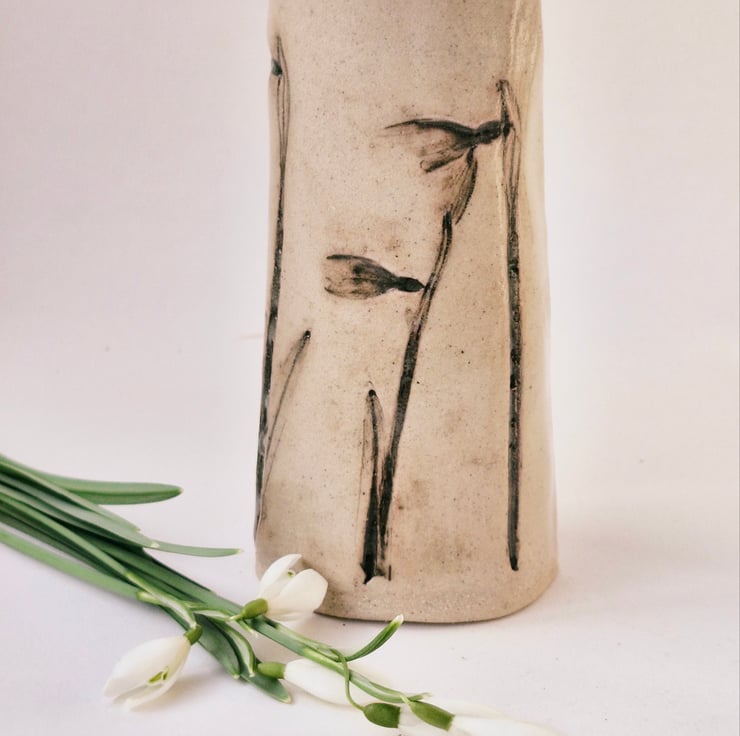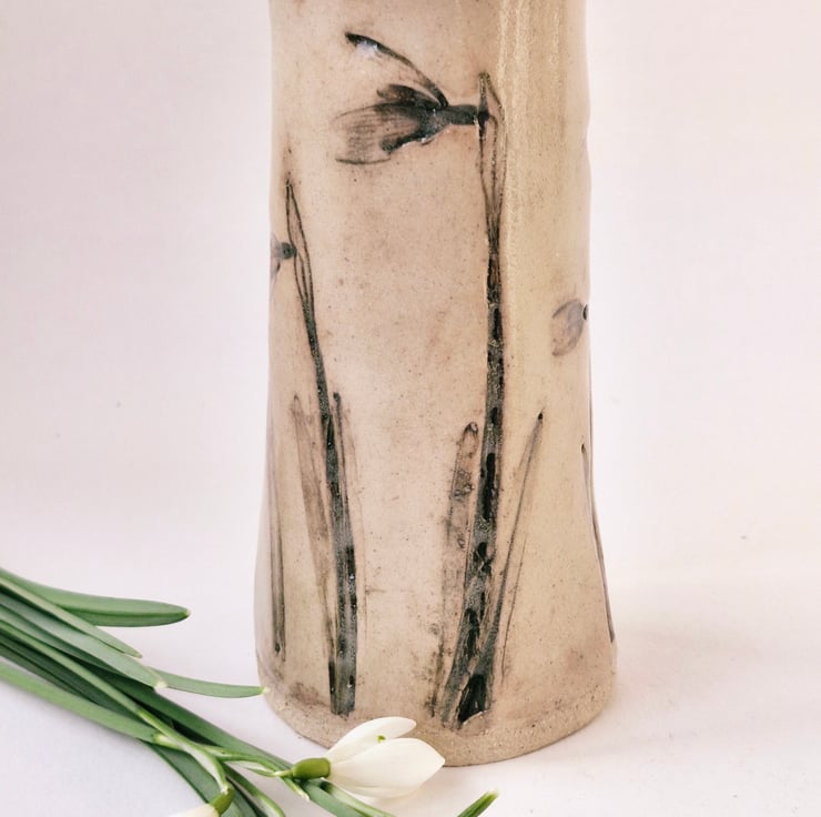 The vase is then fired to 1250',then bought to life using a green colour wash and oxide, delicately applied, settling into the textured surfaces and crevices, adding depth and richness