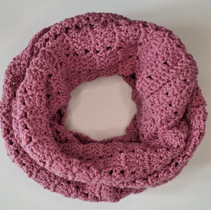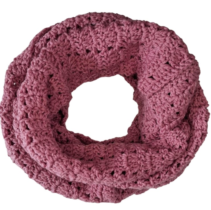 Infinity circle scarf in Merino wool, colour Rose