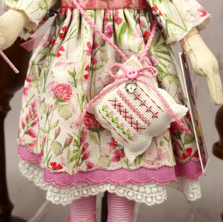 Please enjoy browsing and should you buy a doll she will be packaged in an organza bag. I have been given literally hundreds and will use them until they run out rather than let them go to landfill. Also I have been asked why I don't often repeat combinations of fabric with the dolls. It is because I tend to buy remnant stock where I can, tiny pieces of fabric that are too small for most people to use. So often I have only enough to make one doll. Thank you and my warmest wishes xx