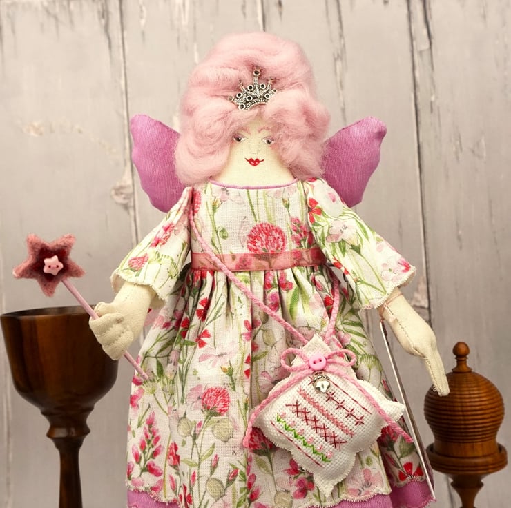I wanted to make a fairy for a while but a more experienced fae not a teenage waif, so I decided to make a Fairy God Mother. Inspired by Flora, Fauna and Merryweather in Sleeping Beauty my God Mothers are practical hard working fairies trying to bring a little magic into the world xx