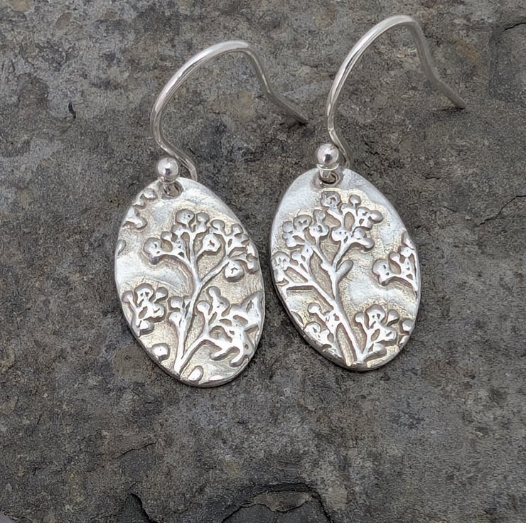 I use fine silver clay (99.99% silver) to produce my silver earrings and employ general silversmithing skills to finish my silver pieces to a high standard.