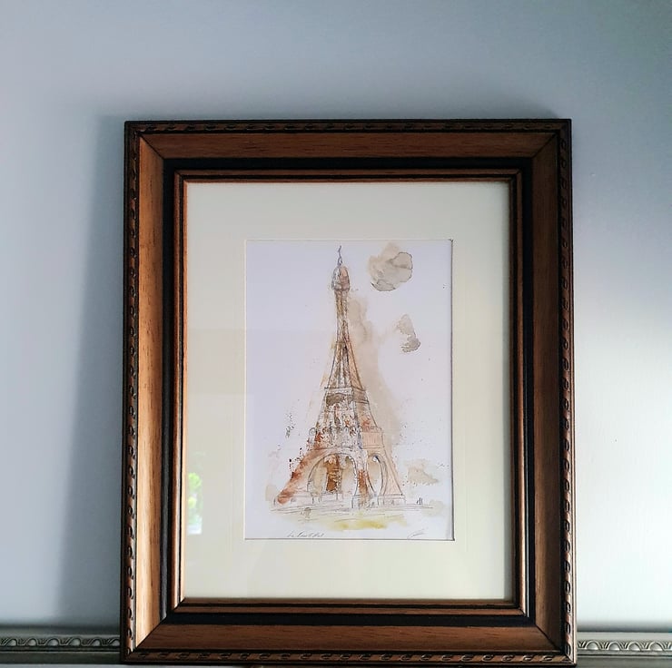 The Eiffel Tower Paris, Original pencil and watercolour, framed