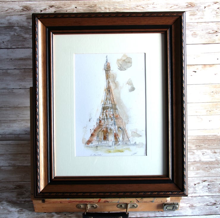 The Eiffel Tower Paris, Original pencil and watercolour