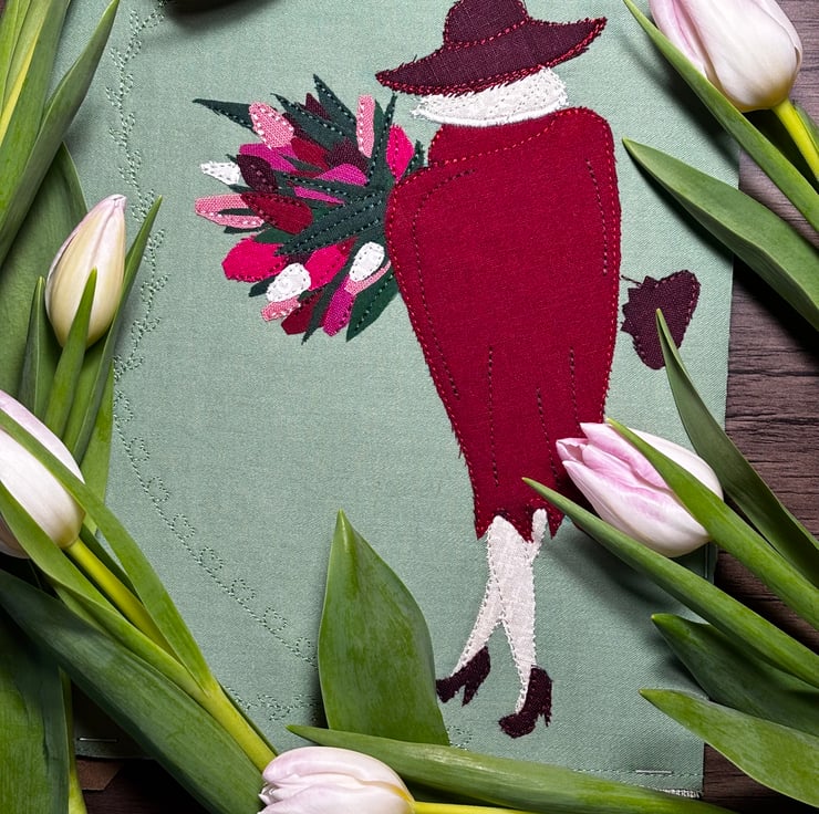 A woman and flowers are always beautiful . Tulips are a symbol of spring, the beginning of life .