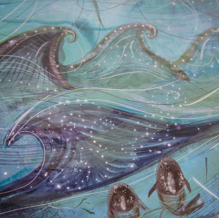 An art print that is inspired by the mythology and folklore of the selkie and the sea.