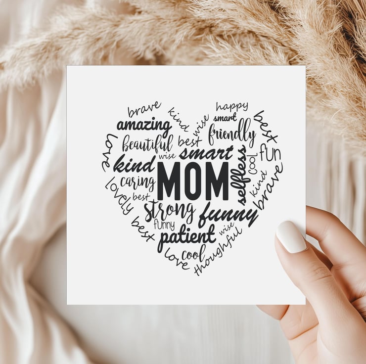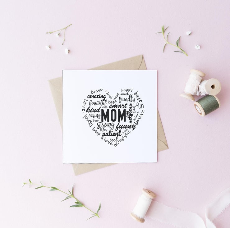 Mom Heart Words Greetings Card - Mothers Day Cards - Fun Typography Card C24