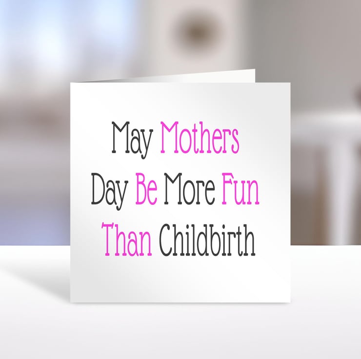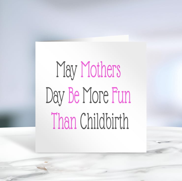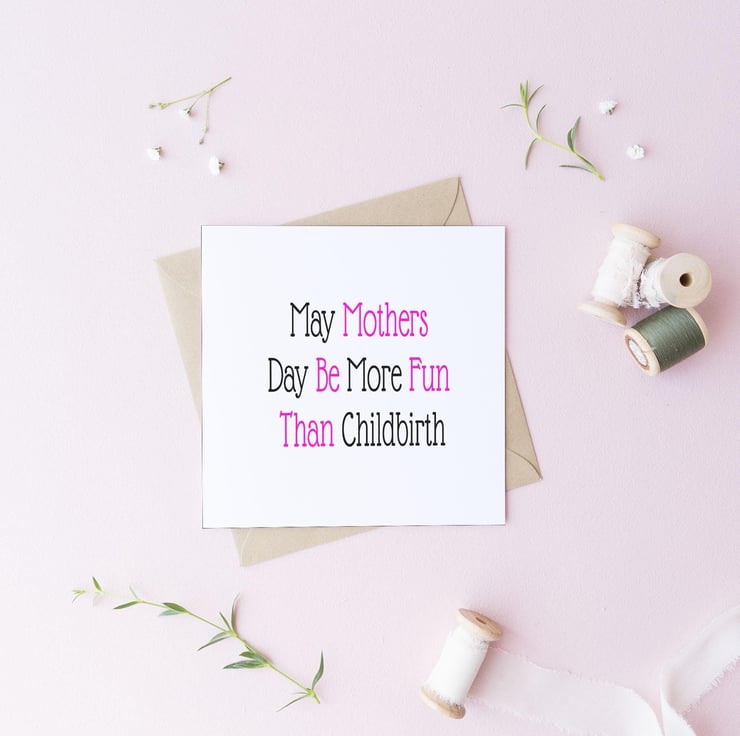 Mum Childbirth Joke Greetings Card - Mothers Day Cards - Fun Typography Card Rec