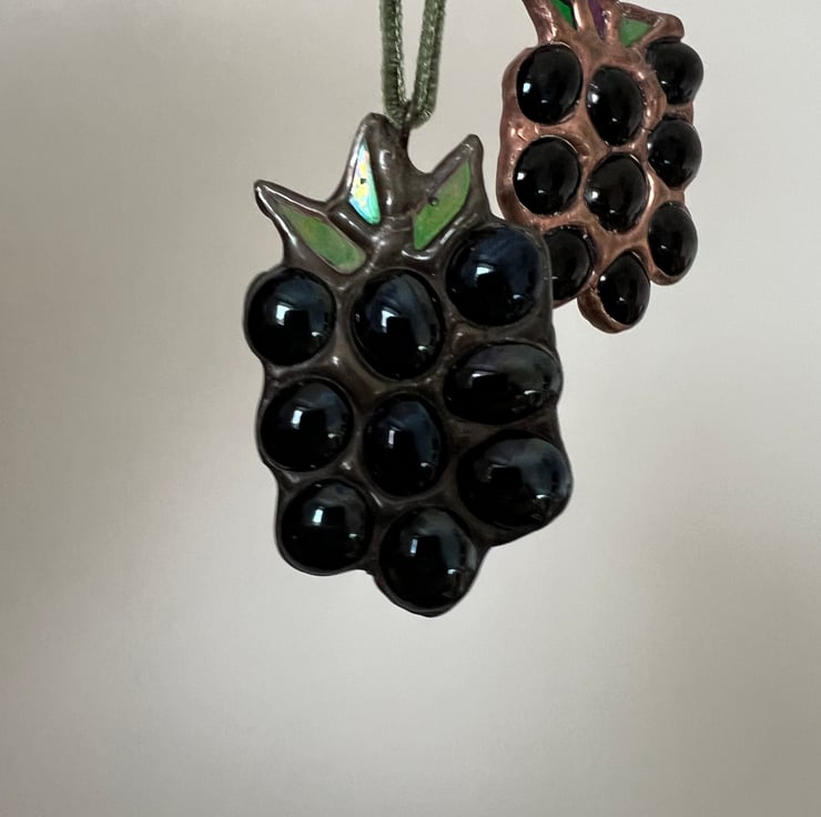 Adorable little stained glass blackberry finished in either black or copper patina. (Copper patina now out of stock)
