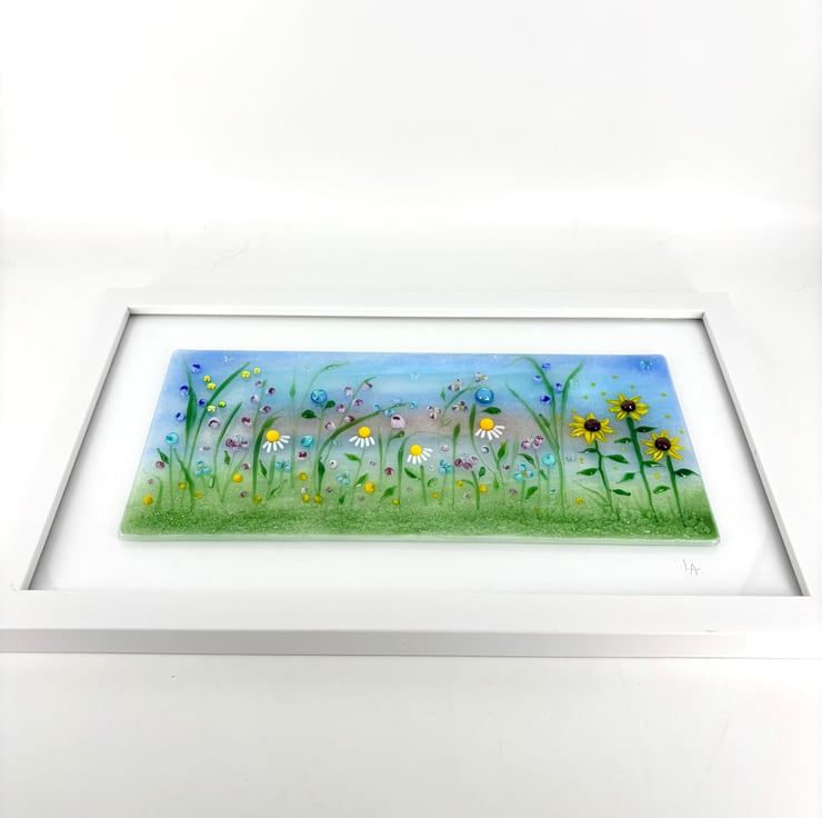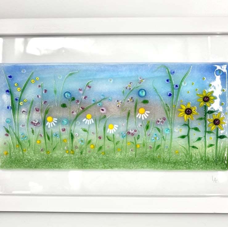 Fused and Lamp Worked Glass Flower Meadow Picture