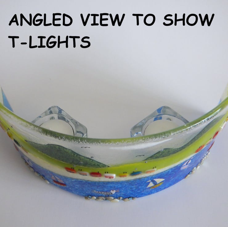'Seascape' is made completely from glass which has been fused in my kiln. There is no enamel, glass paint or any other materials used; this picture is 100% pure bullseye fusing glass!