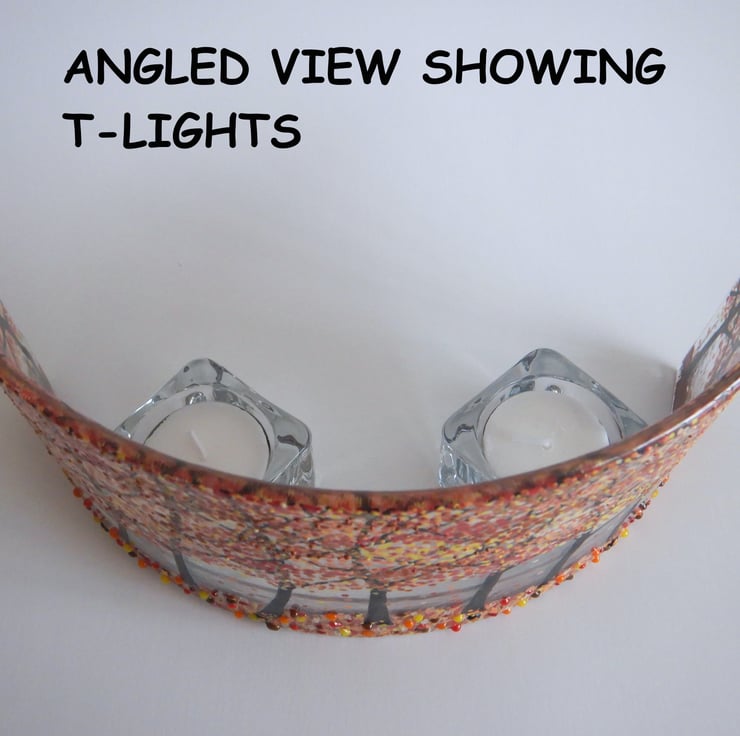 Fused Glass Free-standing curved 'Autumn Tree' Picture and T-Light.