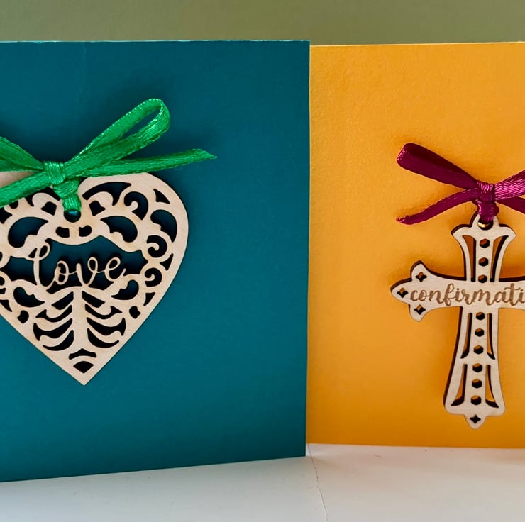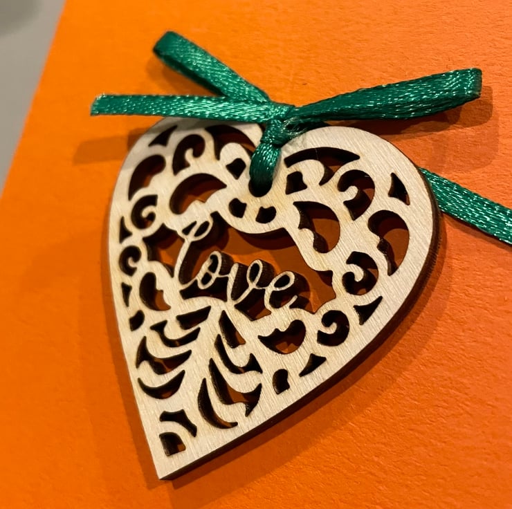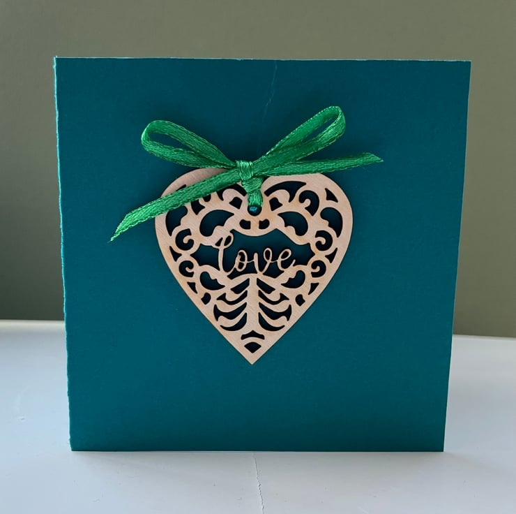 This cute card doubles up as the perfect card and gift. The card itself is blank inside for you to write your message. The delicate wooden heart incorporates the word 'love' and can be untied and kept for use as a decoration.