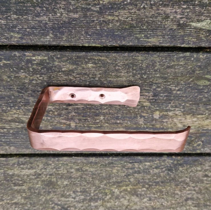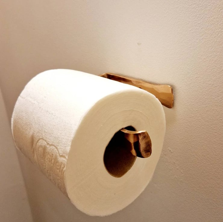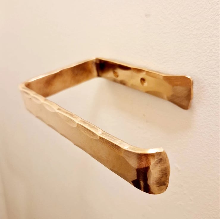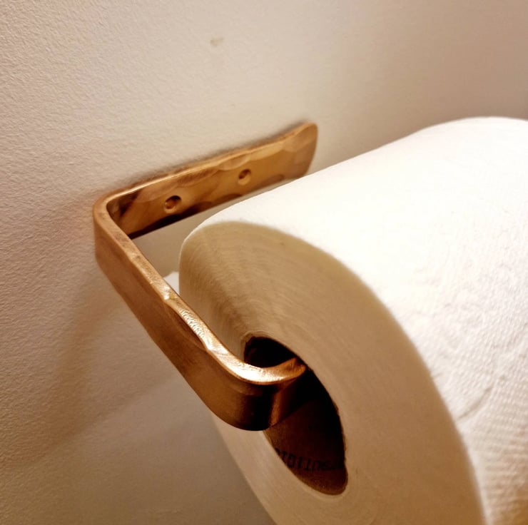 An elegantly hand forged toilet roll holder. Hand crafted over the anvil using traditional blacksmithing techniques to create a stylish and practical item.