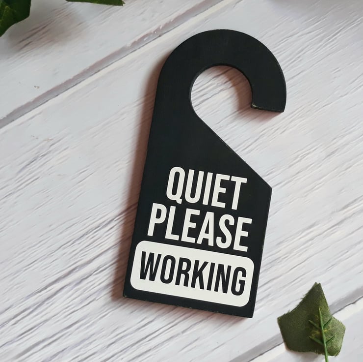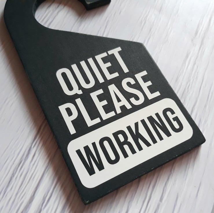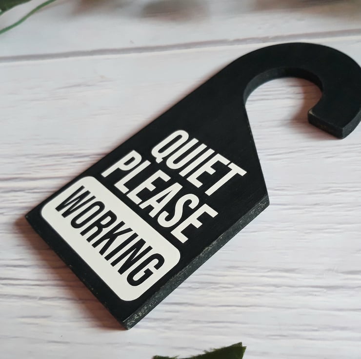 - This 'Quiet Please Working' door hanger is an ideal solution for remote workers seeking to avoid interruptions. Say goodbye to unexpected disturbances.