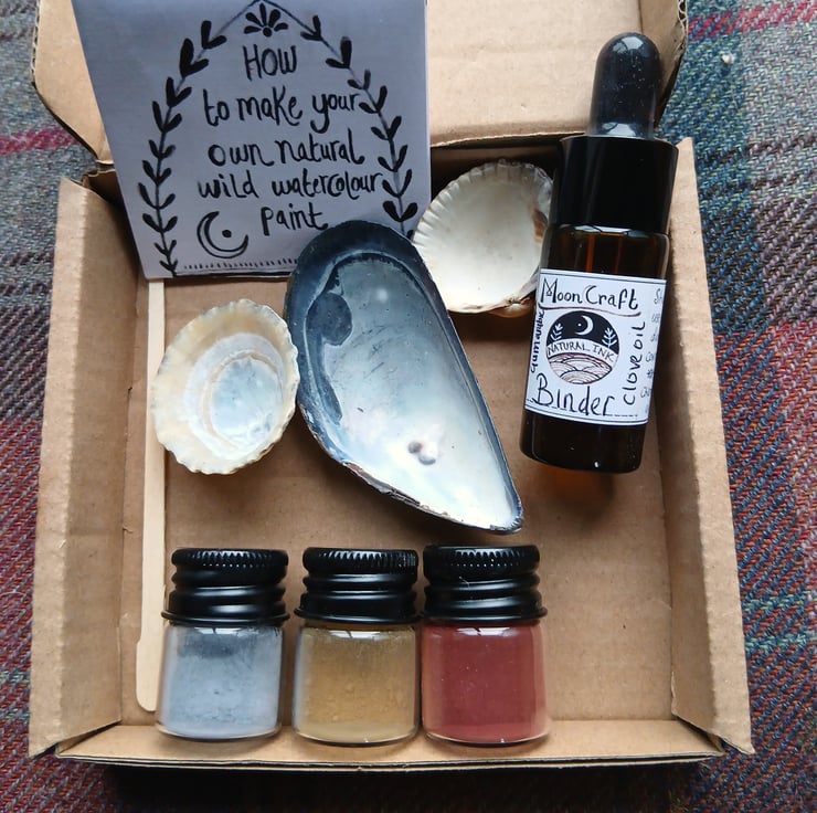 This set is a workshop in a box. It includes all you need to make three natural paints. The pigments have been responsibly and includes homegrown indigo.