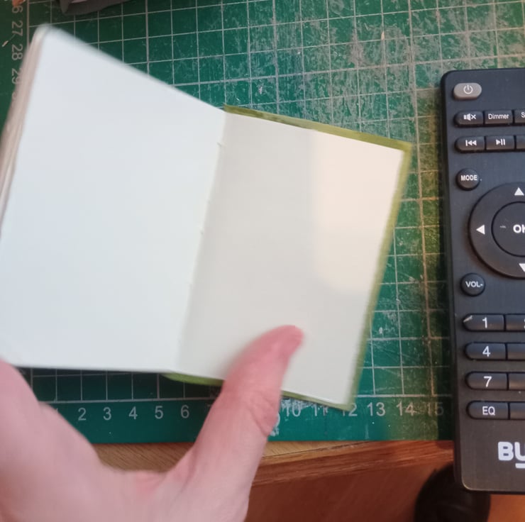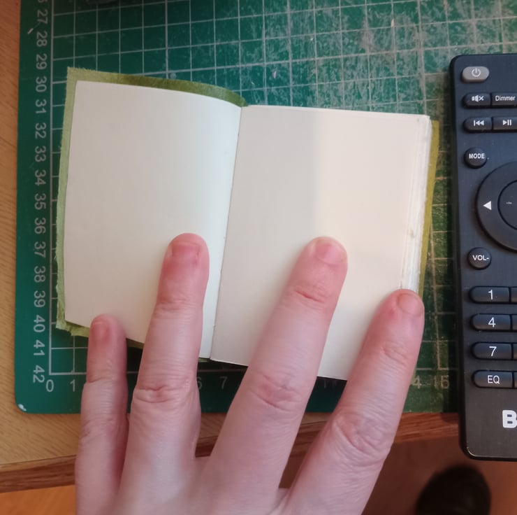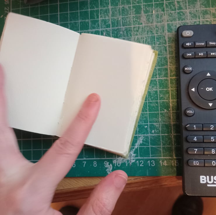 Mini softcover leather notebook. Off white / cream paper, imperfectly made. Please see photos
