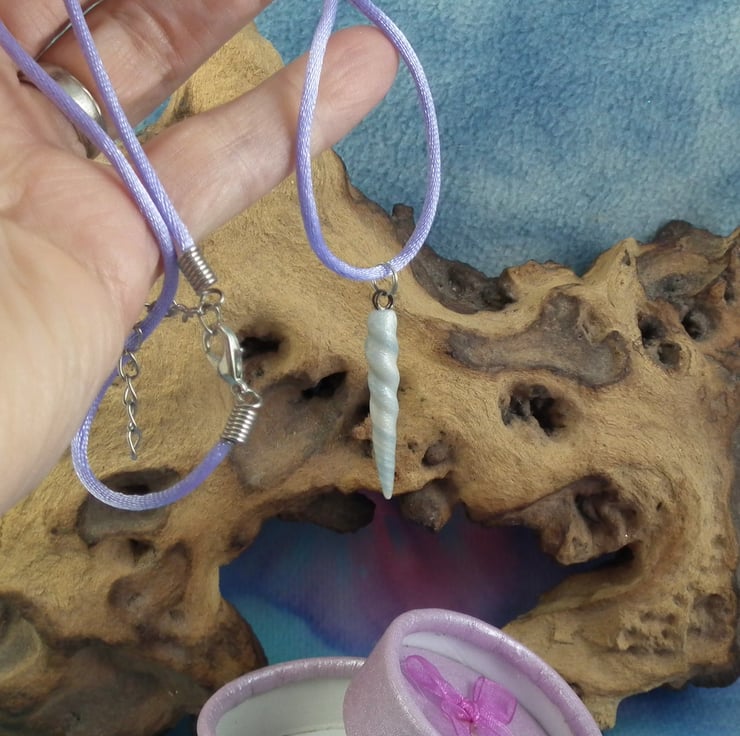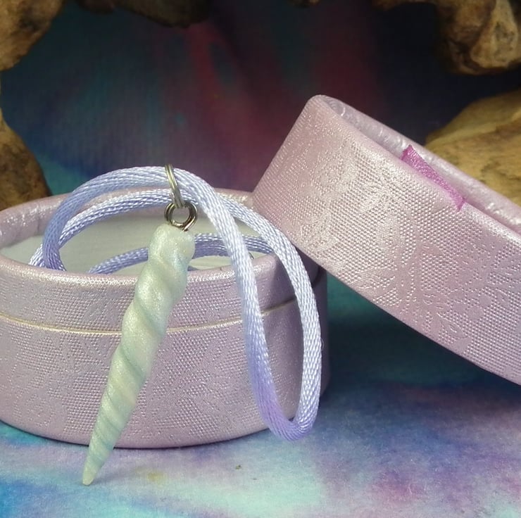 Handcrafted Unicorn Horn on a 20" satin cord. Magic!