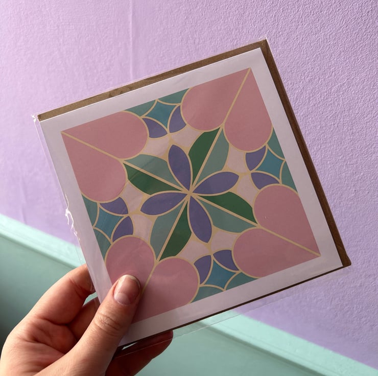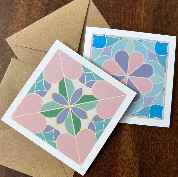 Based on my stained glass designs, these cards are sustainably printed in the UK.