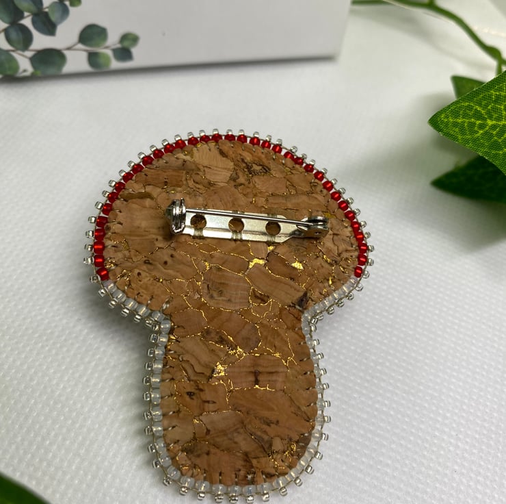 Finished off with a soft cork fabric backing, with a stainless steel brooch back which has a rollover safety clasp.