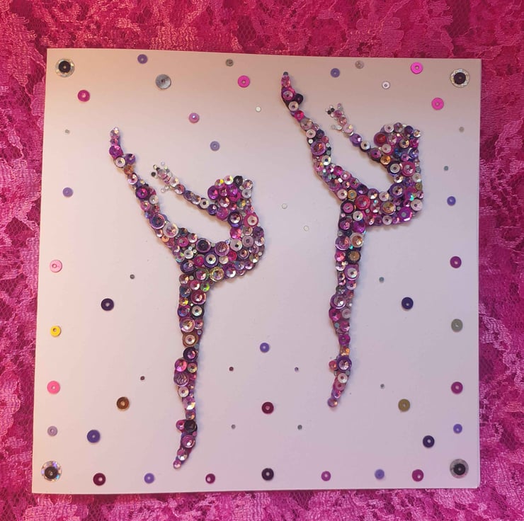 Pink and multicoloured Sequin Art Ballerina greeting/keepsake card, perfect for ballet lovers of all ages, be it for a birthday, Christmas, or any other special occasion.