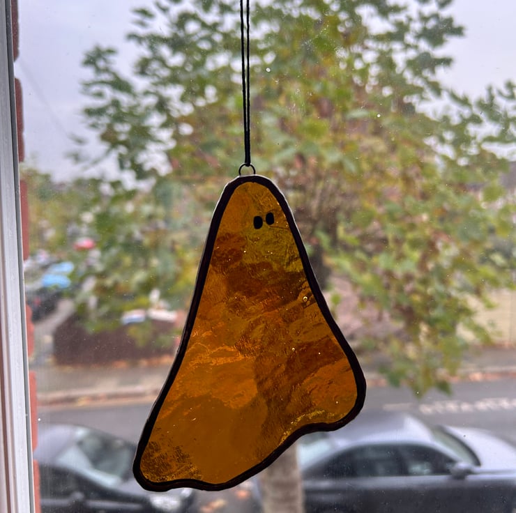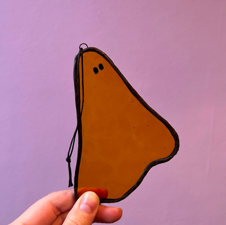This little ghost is made with glowy amber glass.