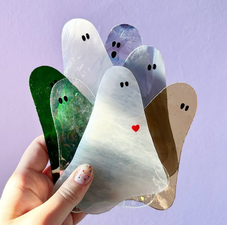 Say hello to your new spooky sidekick. This stained glass ghost is a signature Heather Makes Glass design. Made from high-quality glass, each ghost is totally one-of-a-kind—no clones here, just cute creeps with personality!