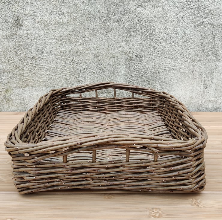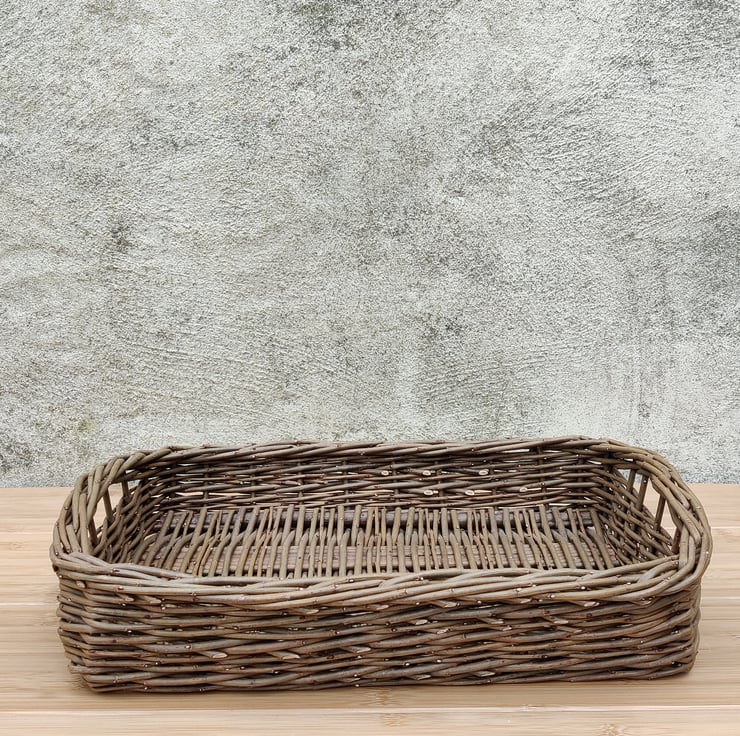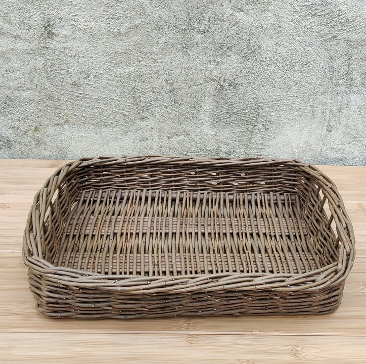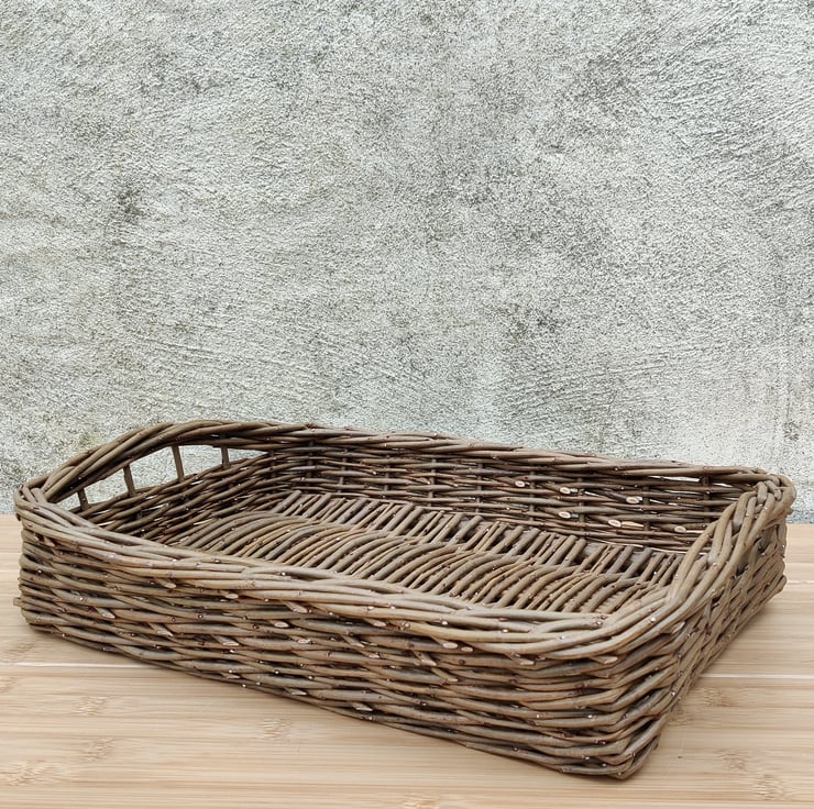Whether it is breakfast in bed or lunch on the lawn, this tray is perfect for carrying food and drink around the house and garden. Rectangular basket with rounded corners and handles under the rim.