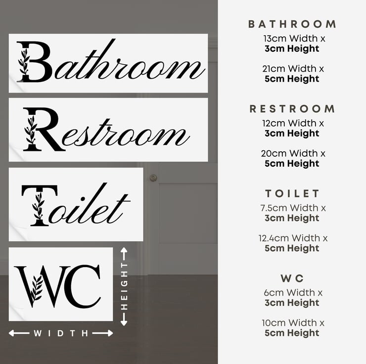 Add a touch of elegance to your bathroom with these beautifully crafted floral capital letter stickers. Choose between the words "Restroom," "Bathroom," "Toilet," or "WC" to personalise your space with a chic, minimalist design. The elegant capital letters paired with a delicate floral detail create a refined, timeless look that complements any decor.