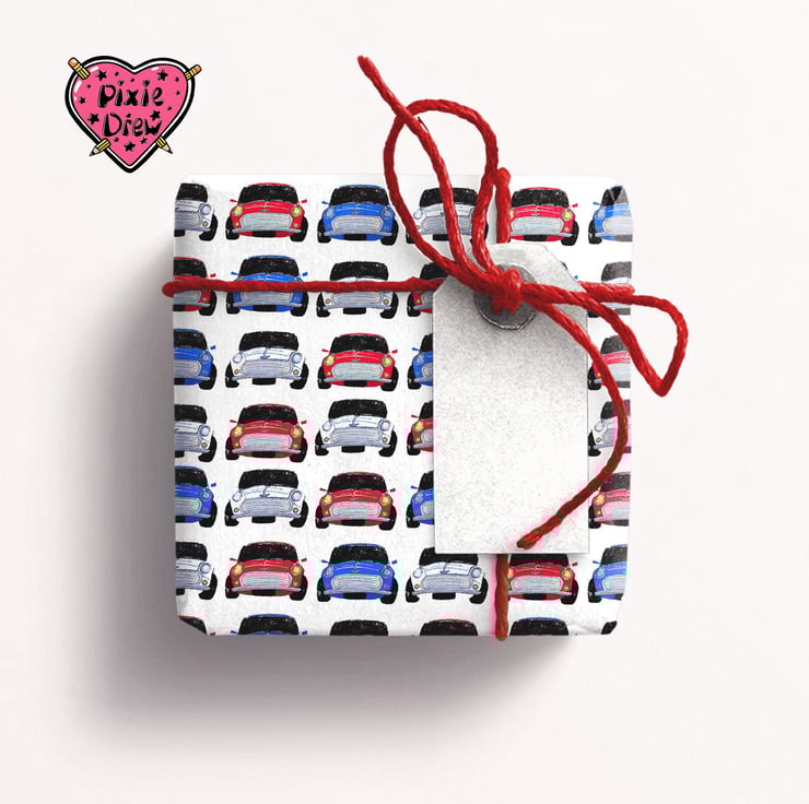 Classic mini Gift wrap, car wrapping paper, vehicle gift wrap, novelty print gif