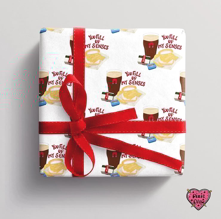 A gallon of magnet, pinch of snuff, chip butty and woodbines make up this Sheffield United wrapping paper with my original hand drawn design made into a repeat pattern.