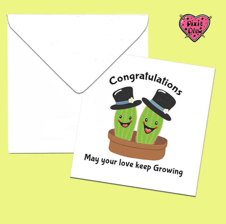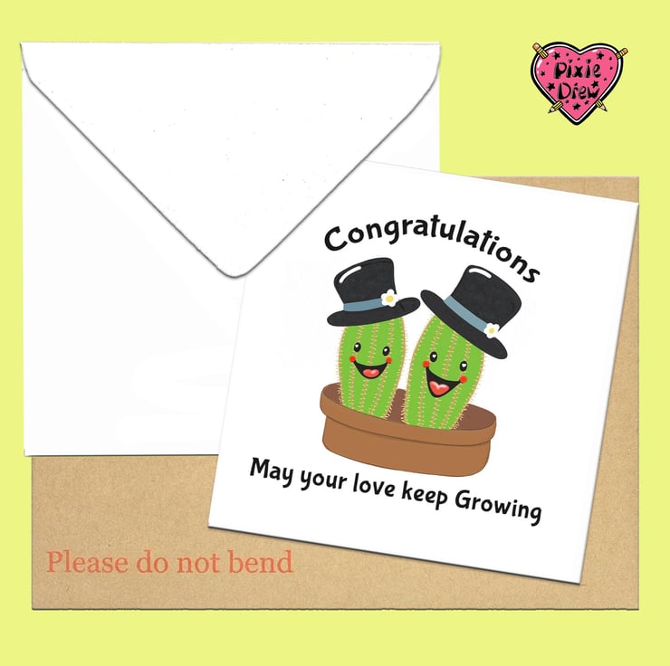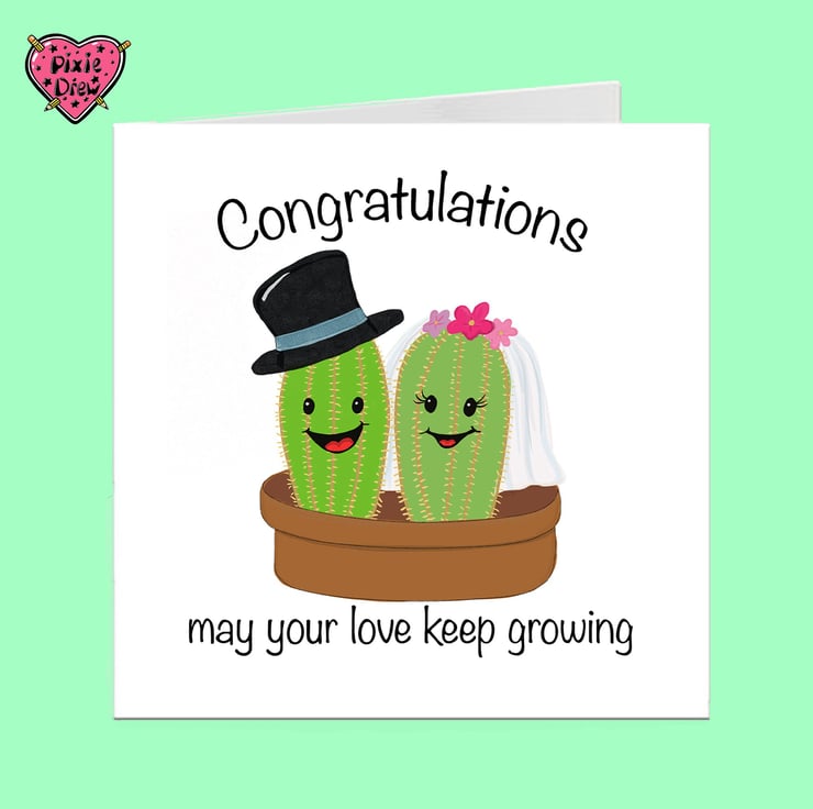 Wedding congratulations card, with a cactus bride and groom, a pair of bride cactii or two grooms.