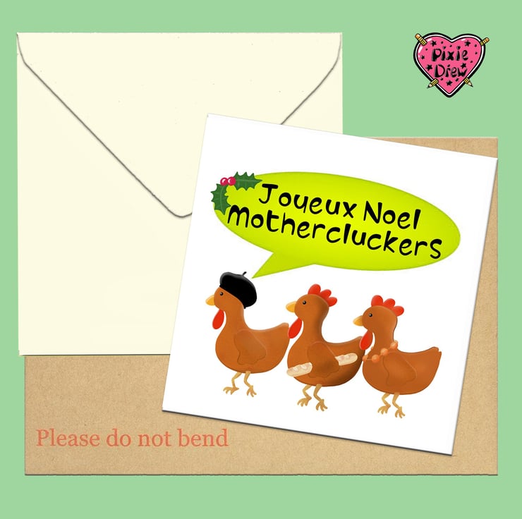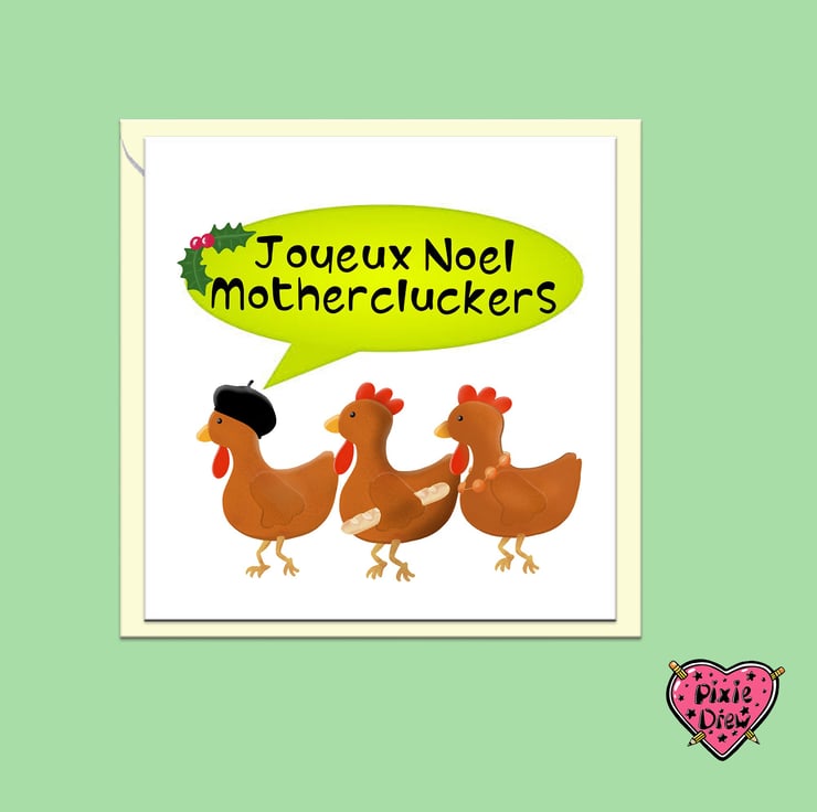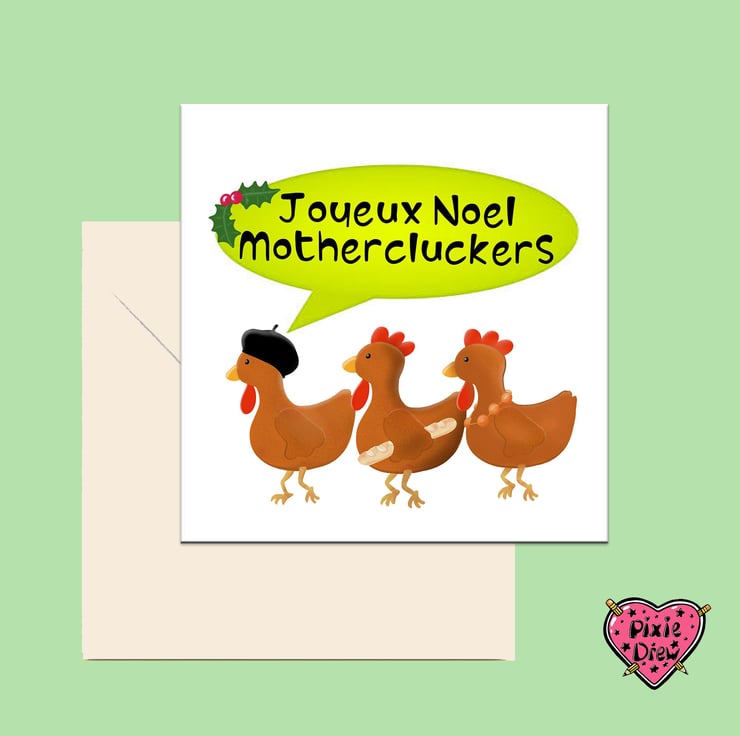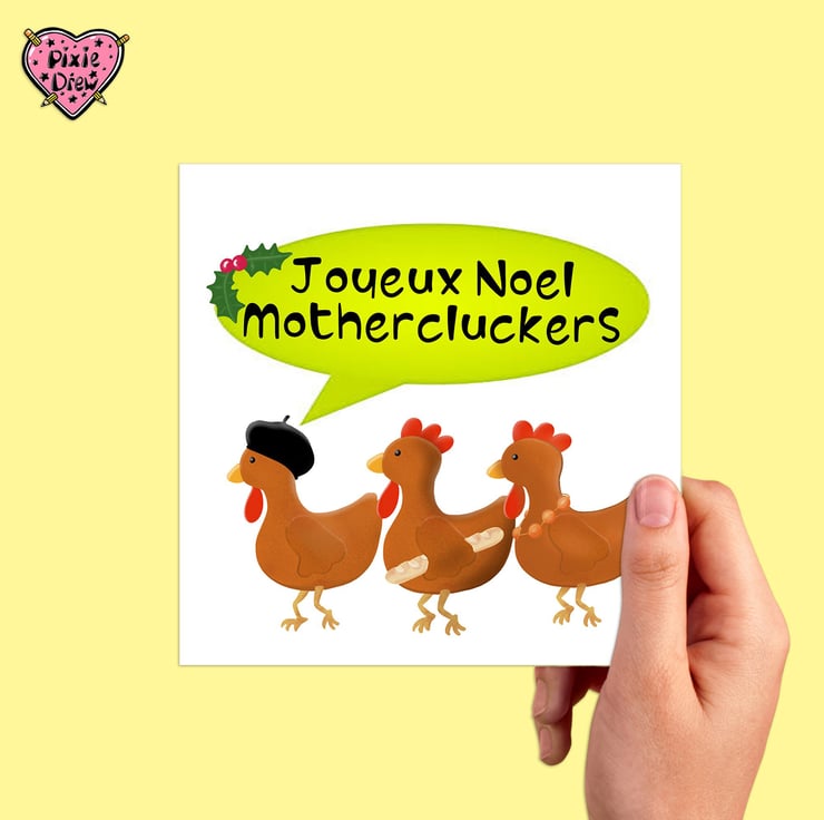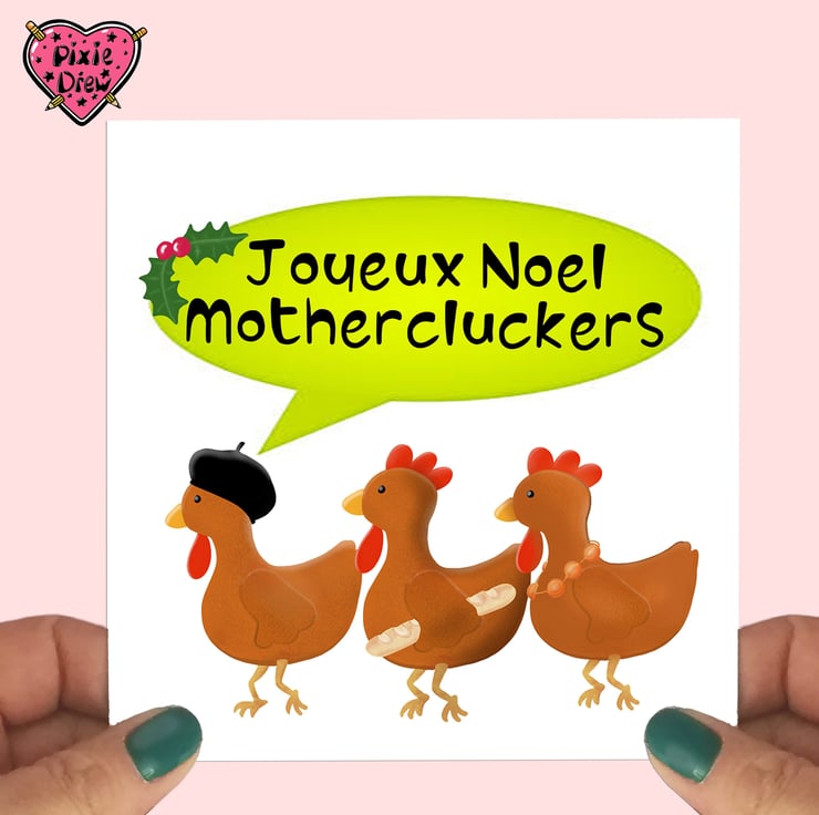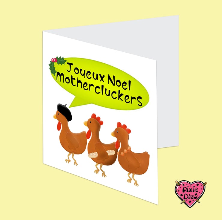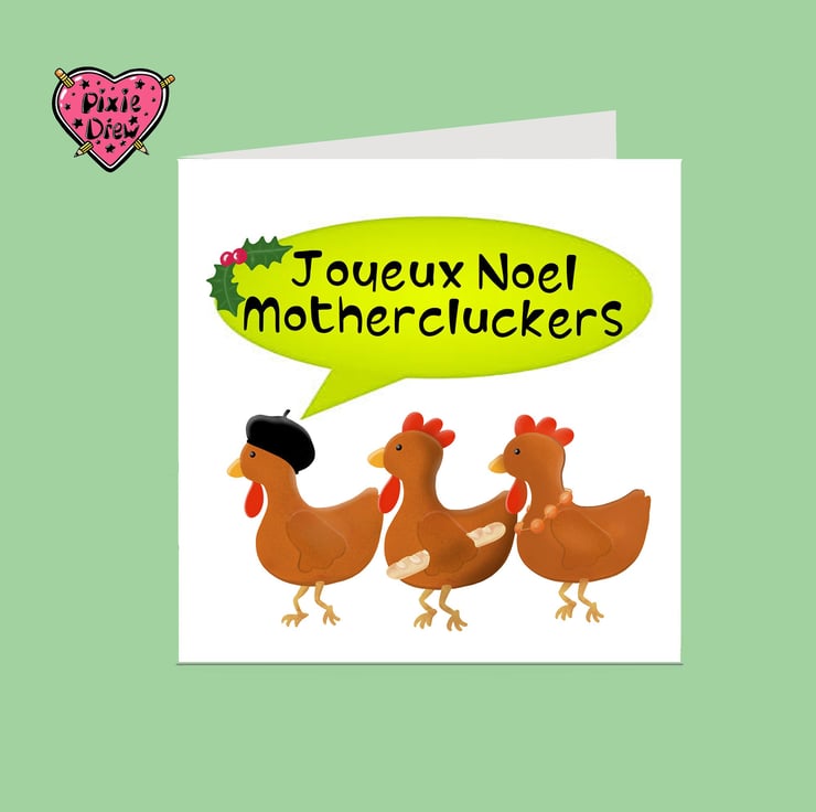 Joyeux Noel Mothercluckers funny 3 French hens card,