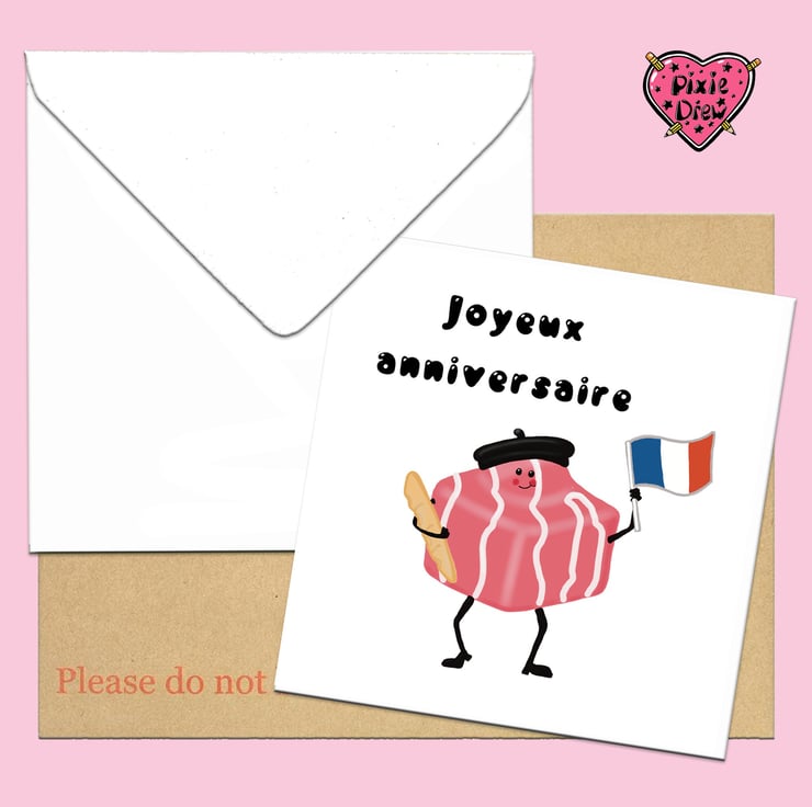 French fancy birthday card with balloons or flag and baguette