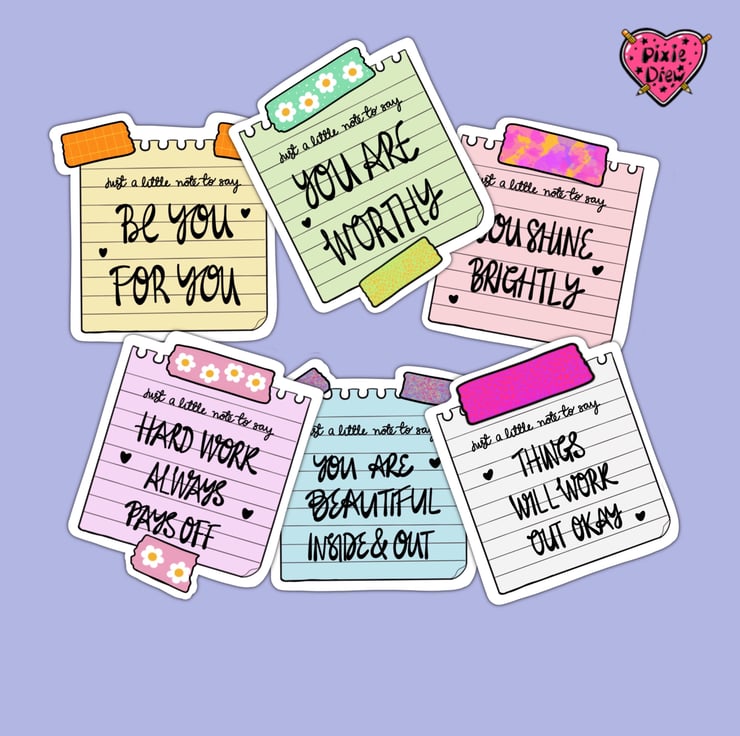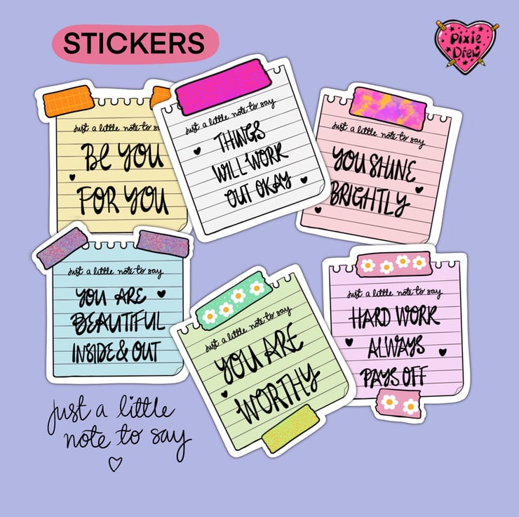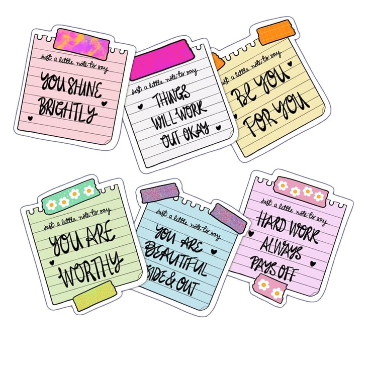 These six stickers were designed to promote self-care and mental well-being and have been drawn by hand