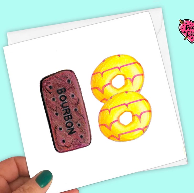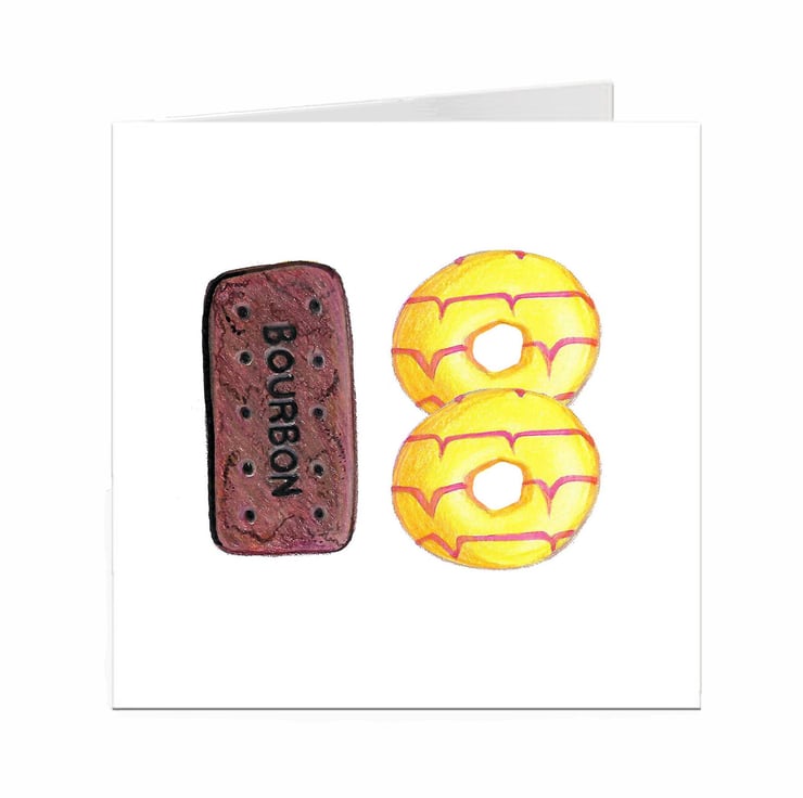18th birthday card made with my bourbon and party ring biscuit illustrations.