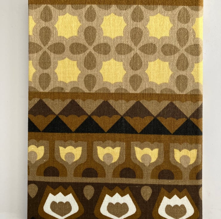 Made with care from high quality 130gsm smooth white paper which is hand cut, folded, stitched and bound, and then covered with genuine vintage cotton 'Melford' by Moyagashel fabric from the 1970's.