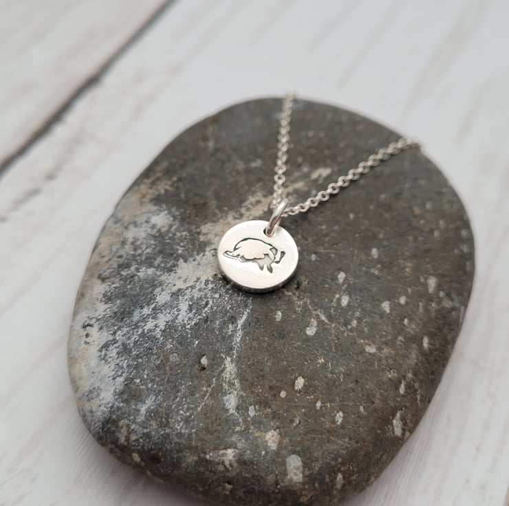 The finished tiny badger pendant is sterling silver and measures 1cm diamater approx at the largest point.