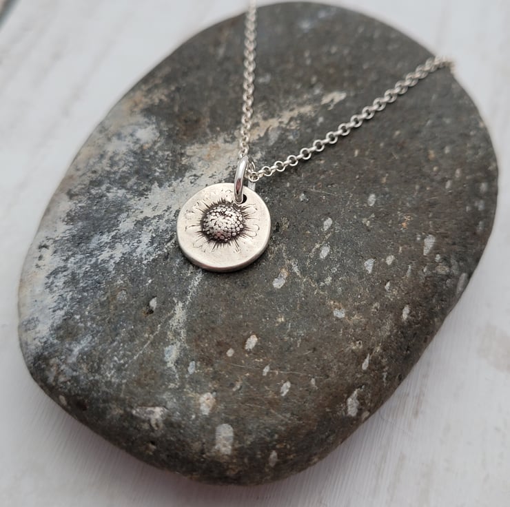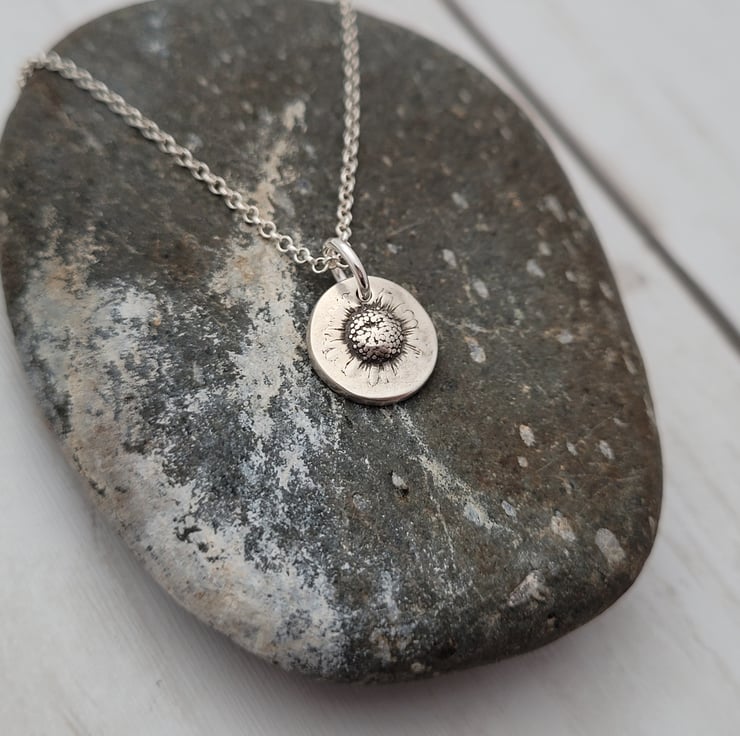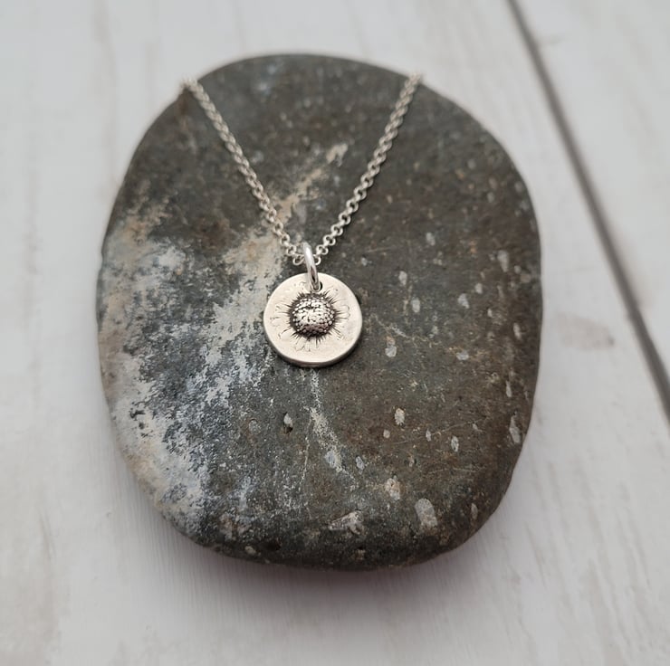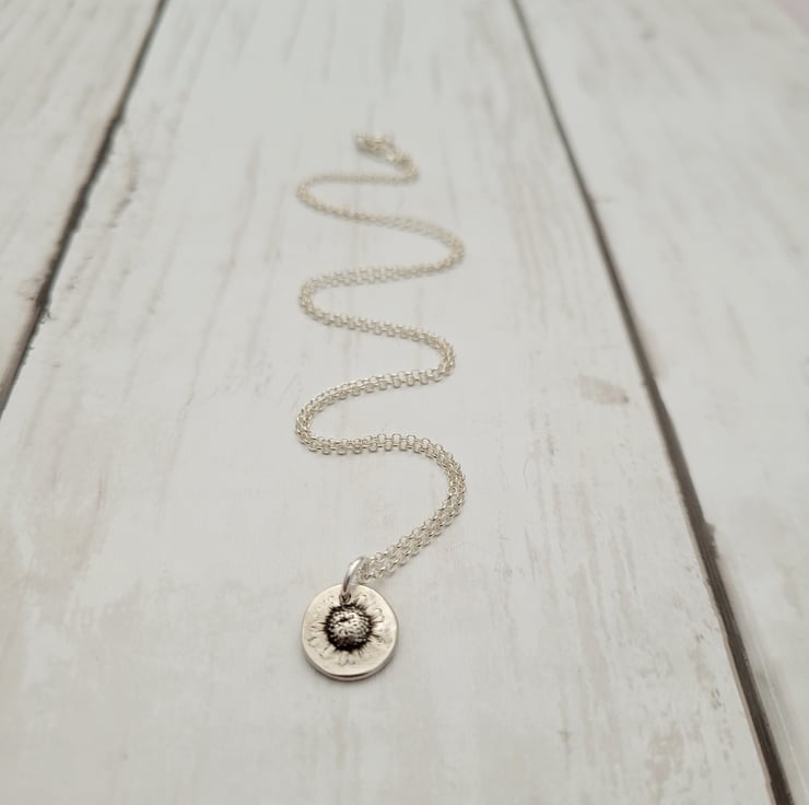 The tiny daisy pendant is very dainty and measures approx 1cm at the largest point.