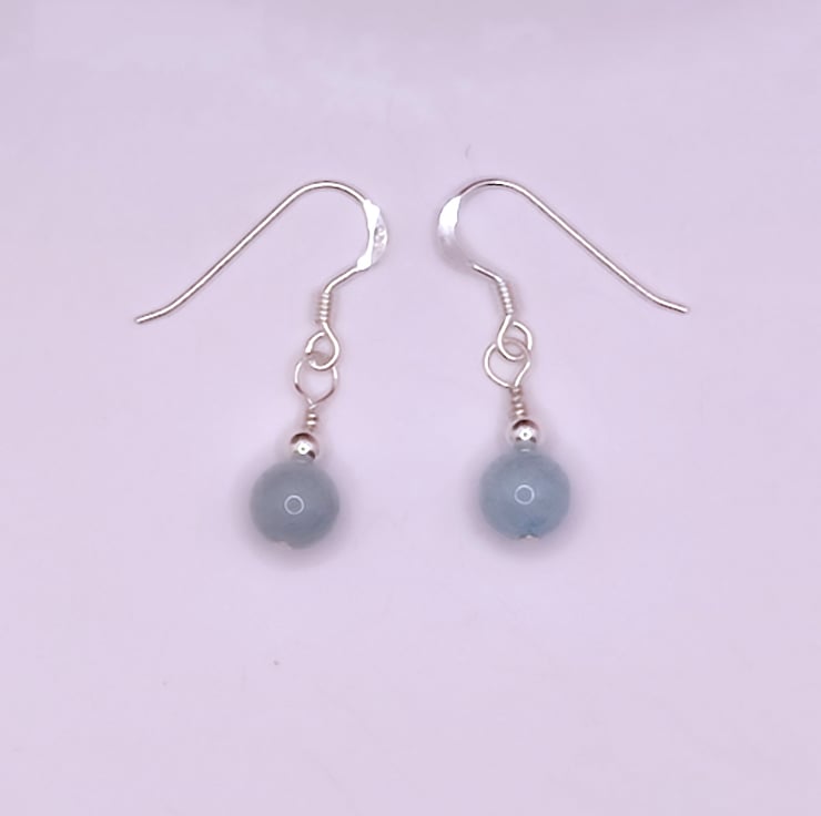 Handmade by me these beautiful 6mm Aquamarine beads have been wire wrapped and hung on a Sterling Silver Fish Hook style ear wires.