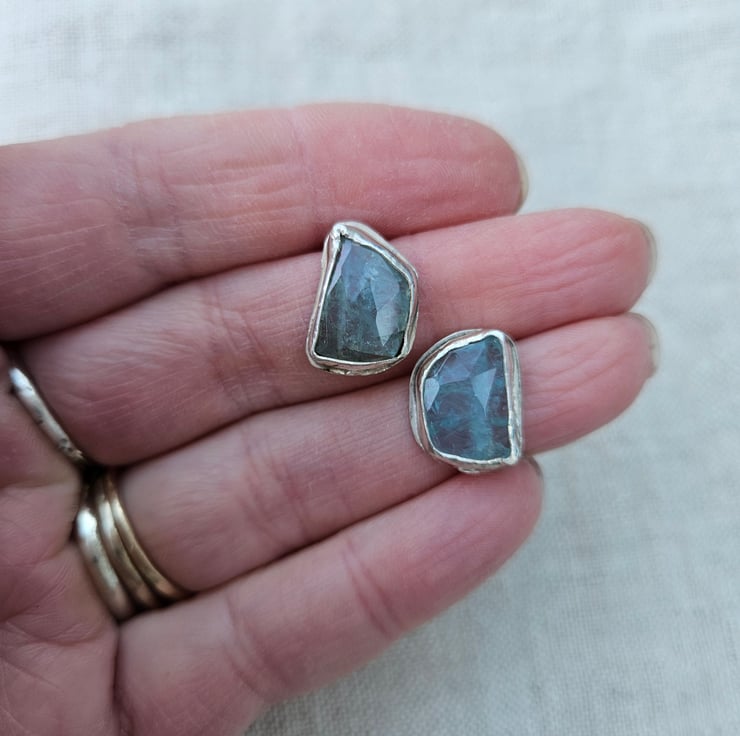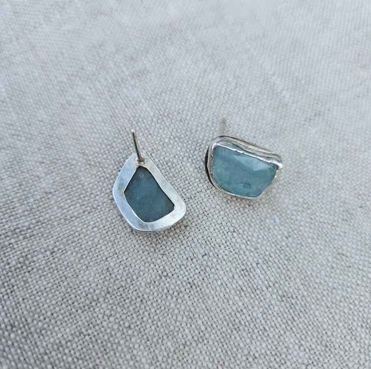 Gorgeous free-form aquamarine stones are the feature of these sterling silver stud earrings.