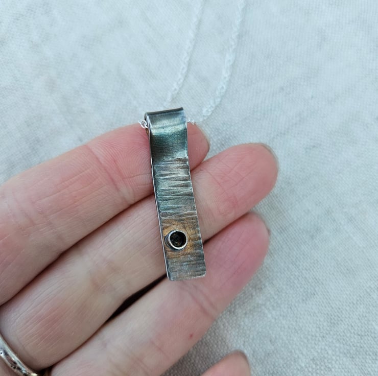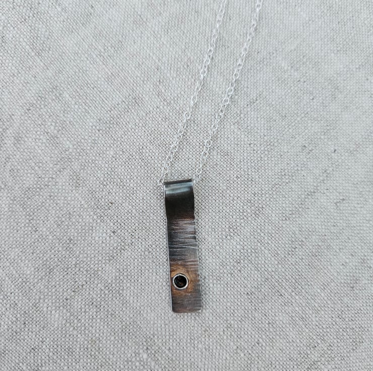 This abstract silver pendant has a lovely patina achieved by an oxidising solution. The design features a circle of silver (without a stone)
