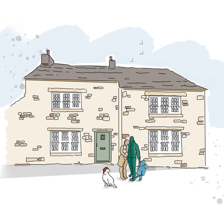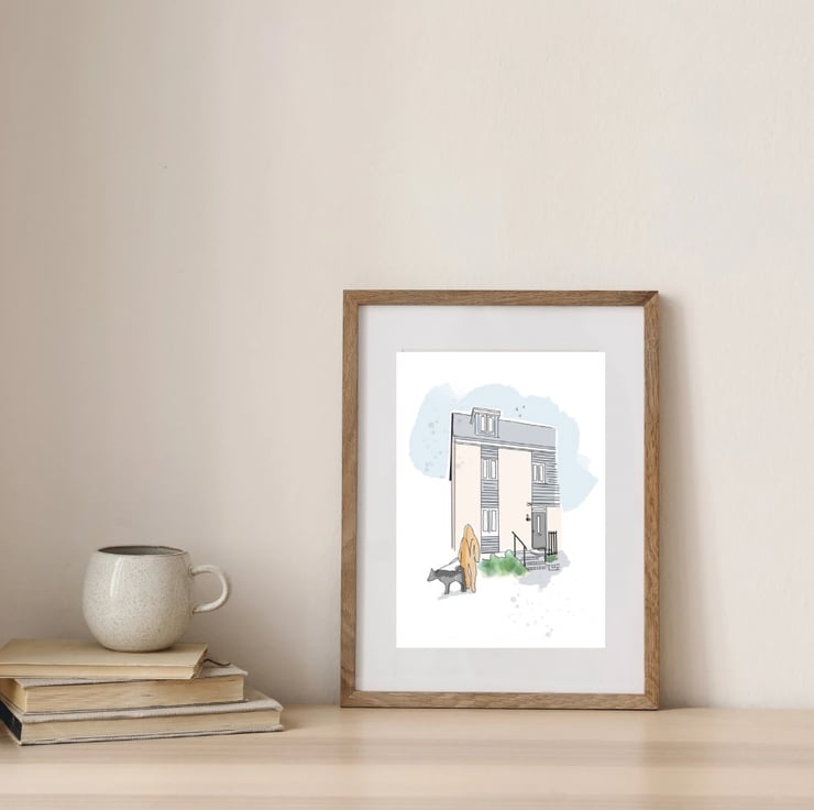 Each home is hand drawn on my iPad and then printed onto A4 good quality stock card.