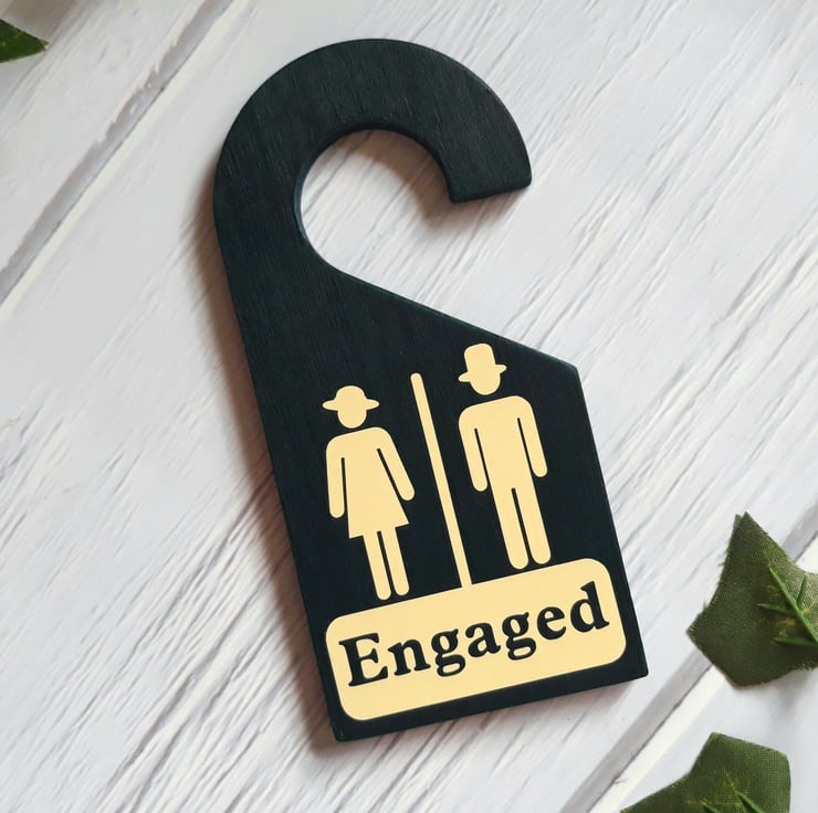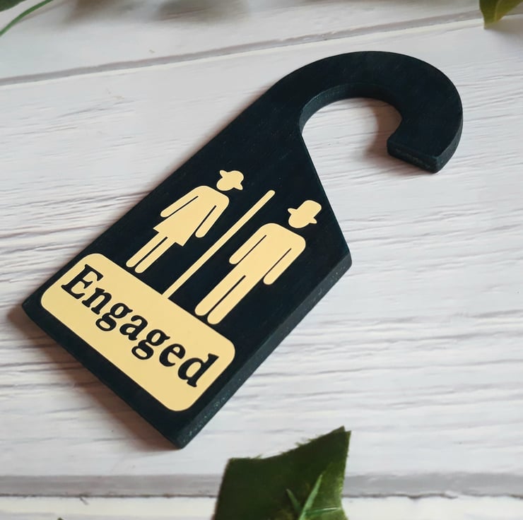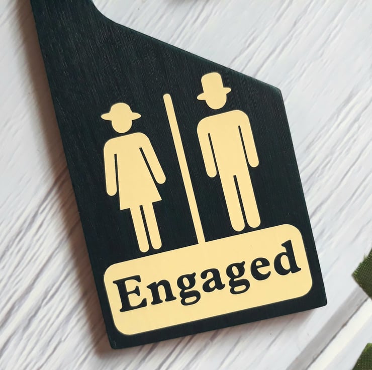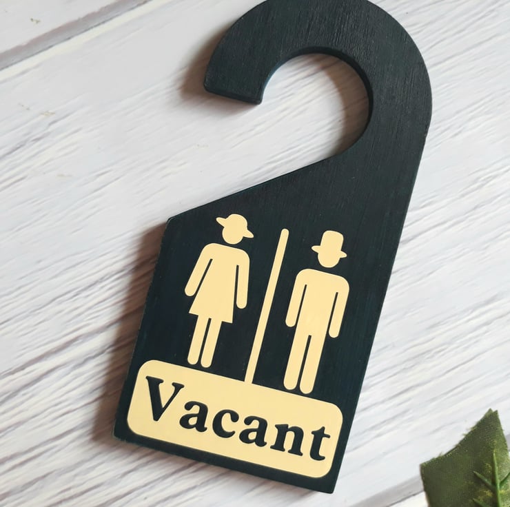 -This handcrafted, double-sided bathroom door hanger is an ideal indicator of whether a bathroom is available or in use.