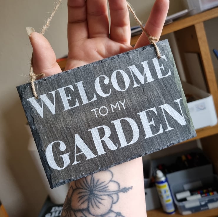 Crafted from reclaimed roofing slate, these signs are hand measured and cut so please allow up to a 3mm difference.