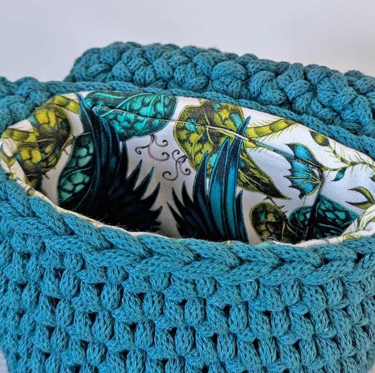 Handmade Crochet Bag Lined with Emma Shippley Fabric