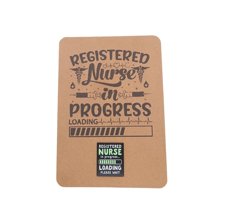 Registered nurse in progress Enamel Pin Badge Brooch measures 3 cm by 2.5cm.